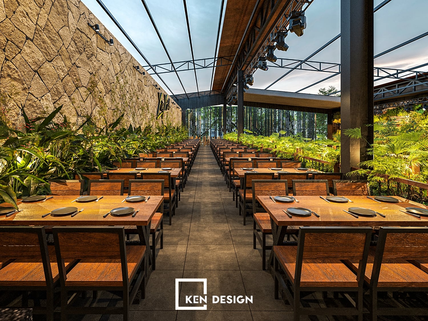 Based on the business model analysis and site conditions, KenDesign developed a beer garden concept combining Tropical and Industrial styles as the main design language. This approach was not trend-driven, but problem-driven.