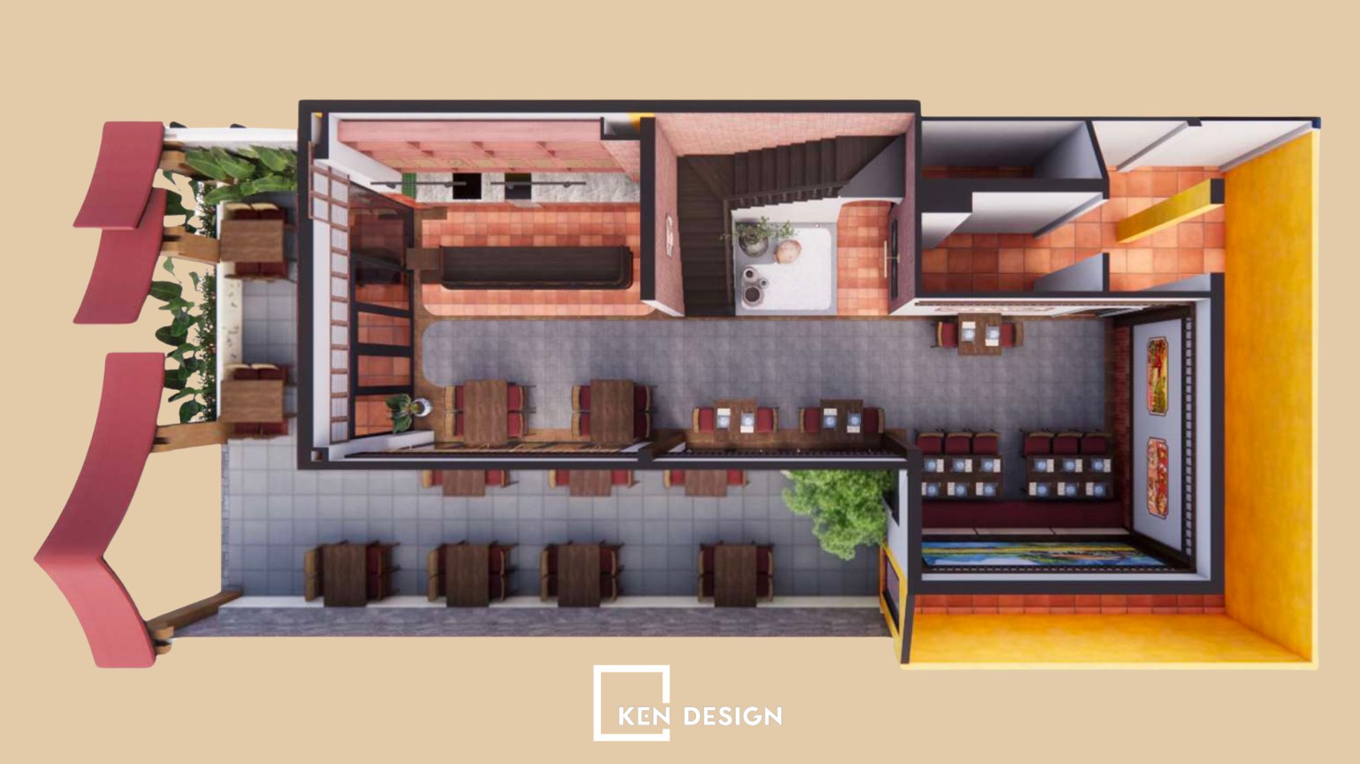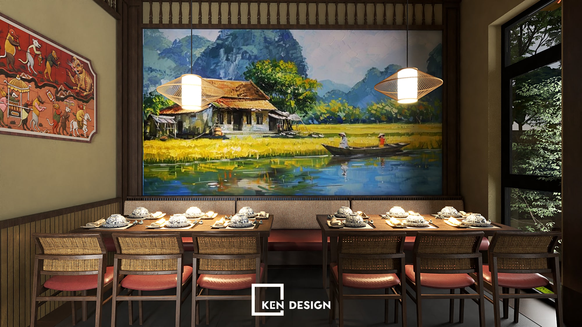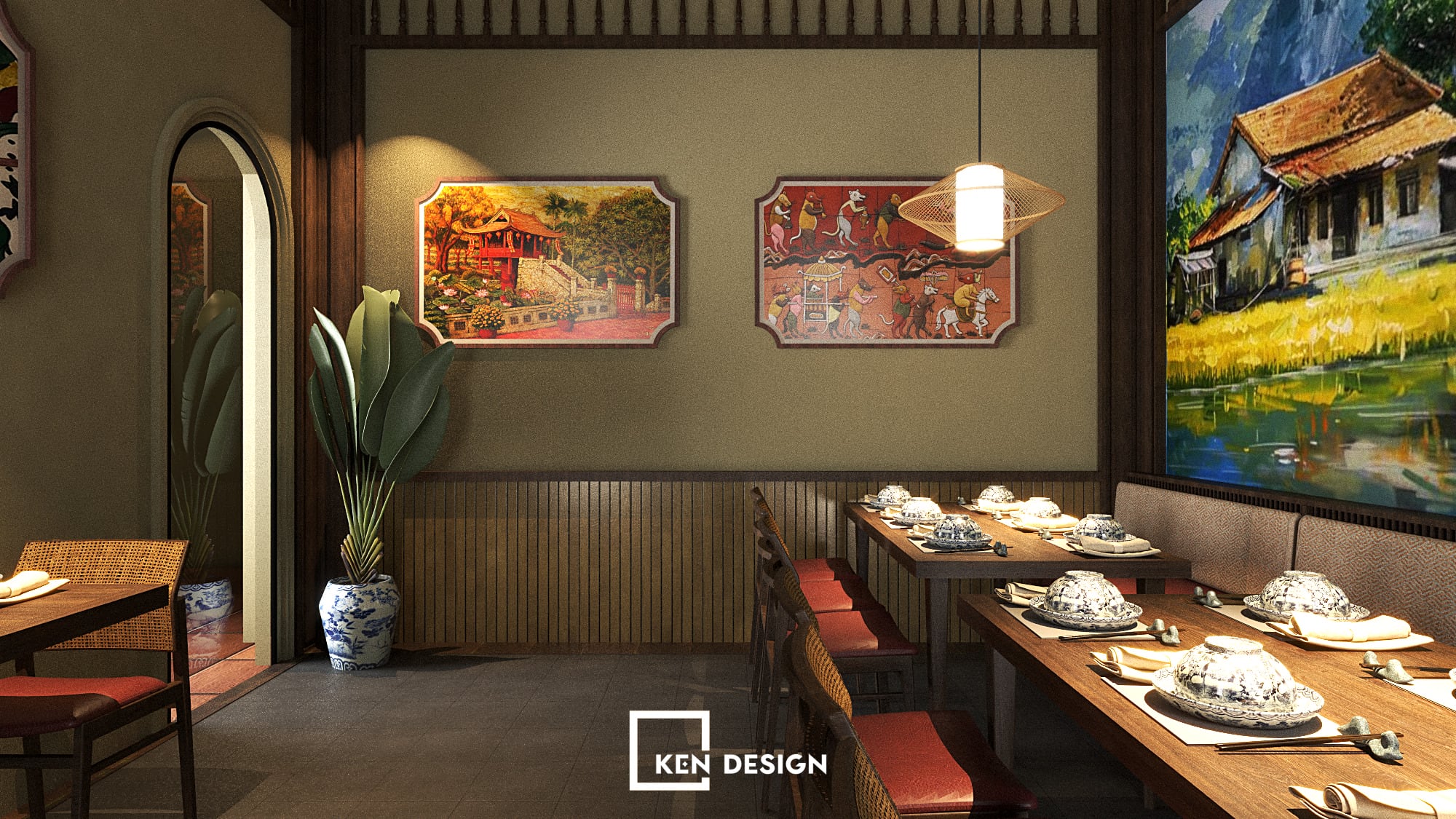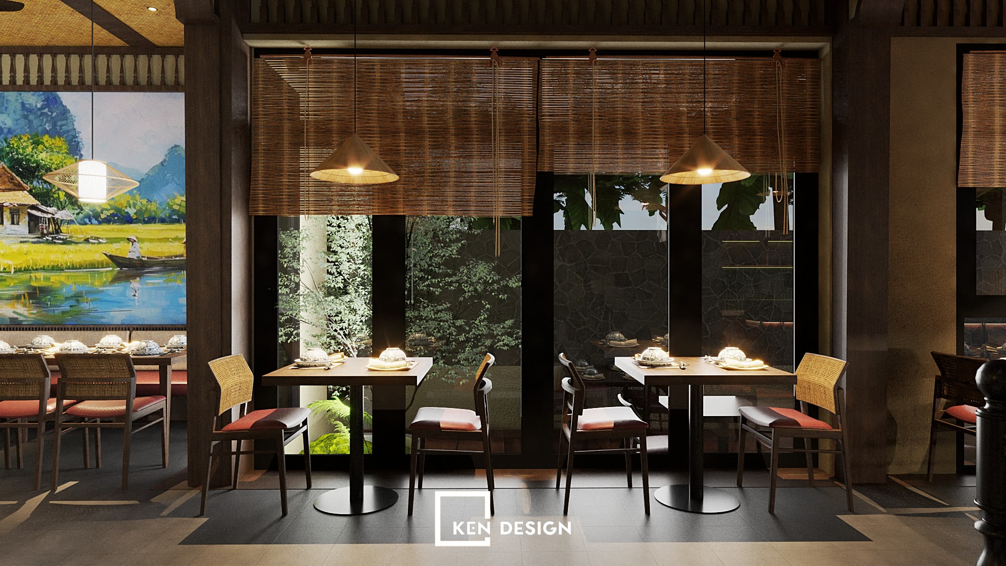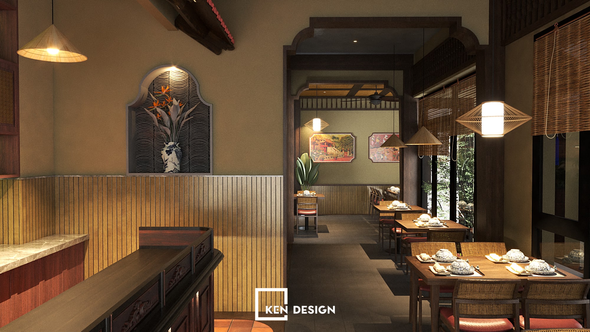 Through this project, Ken Design showcases a flexible and strategic design approach, offering sustainable solutions for Vietnamese restaurant models that balance cultural identity, operational efficiency and contemporary aesthetics.