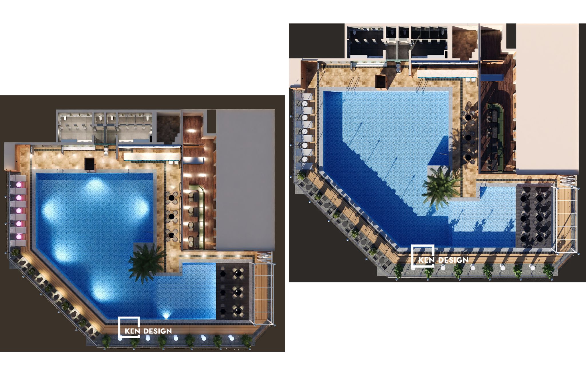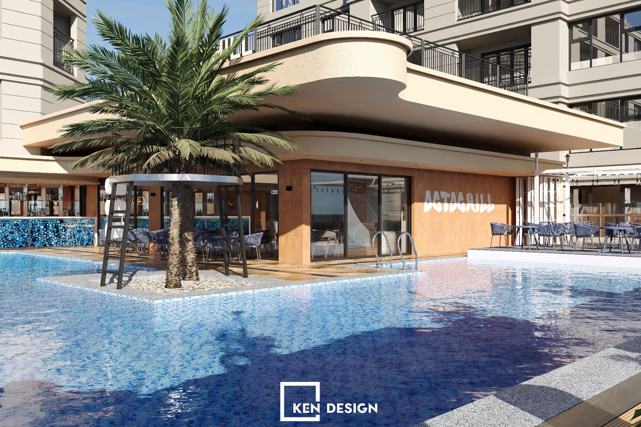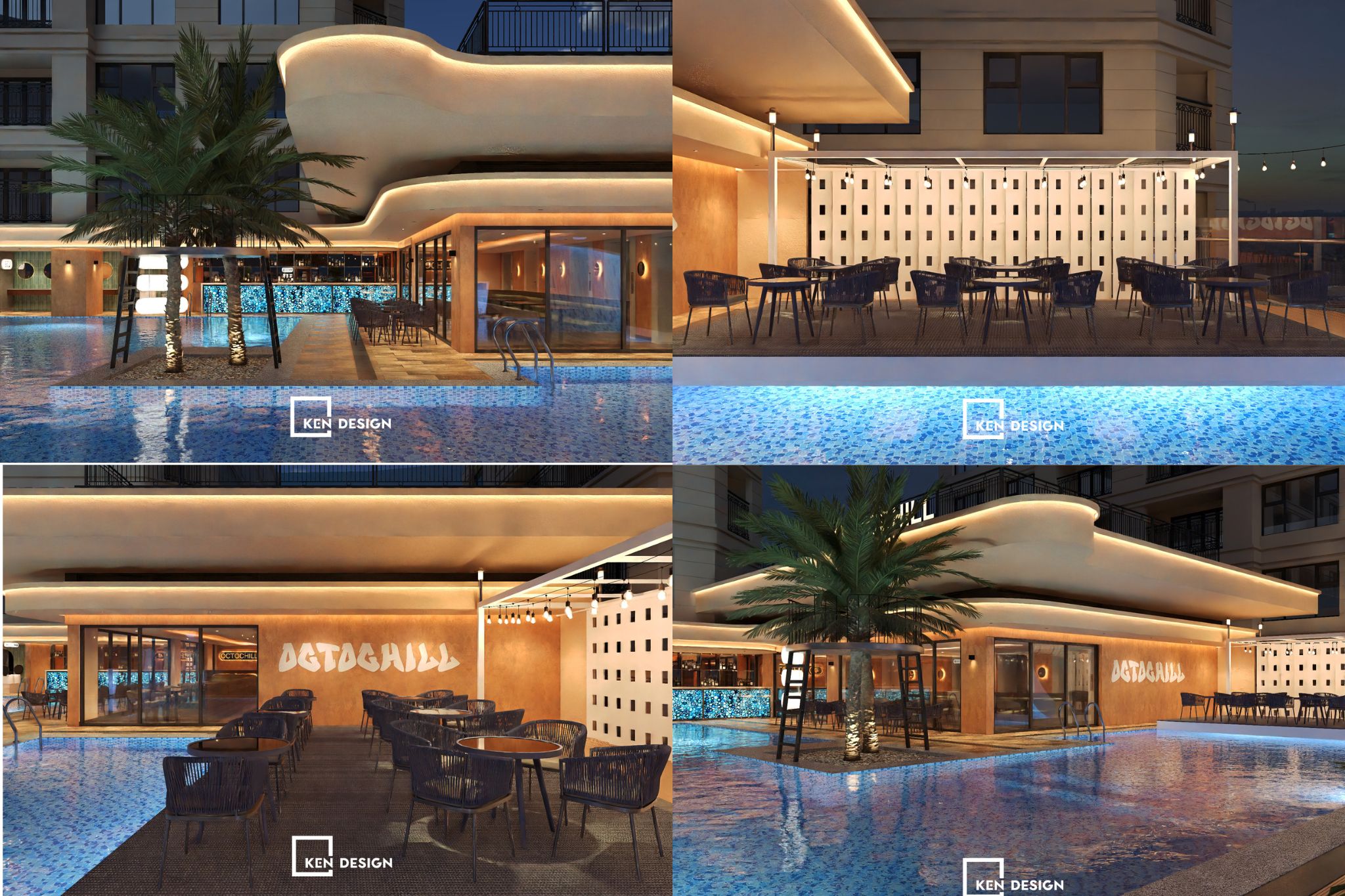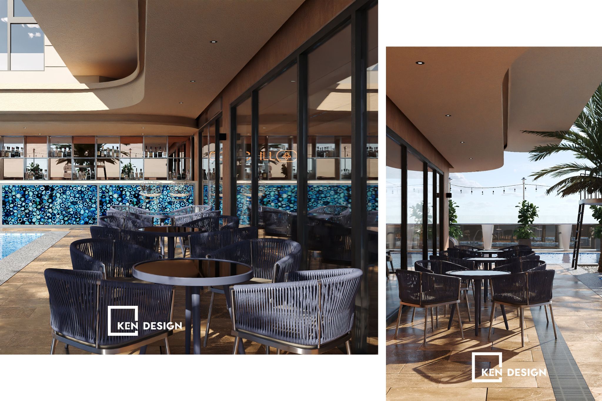 As the F&B industry constantly seeks new ideas, OCTOCHILL emerges as a creative breakthrough by combining a refreshing daytime swimming pool with a vibrant nighttime bar. Spanning 660m², the project is more than just an entertainment venue. It is a “miniature ocean,” where guests can immerse themselves in deep ocean blue tones, glowing coral reefs, and enchanting lighting. With modern design thinking and attention to detail, KenDesign has crafted a space that harmonizes aesthetics, functionality, and emotions.