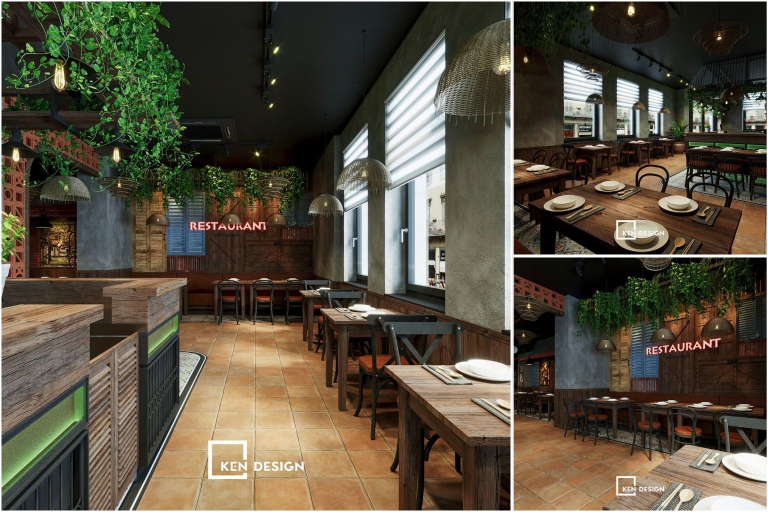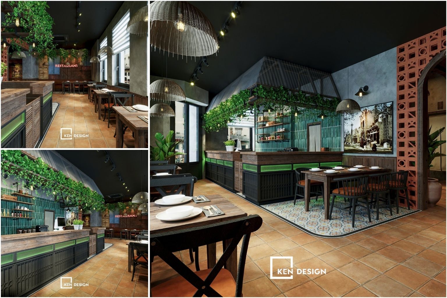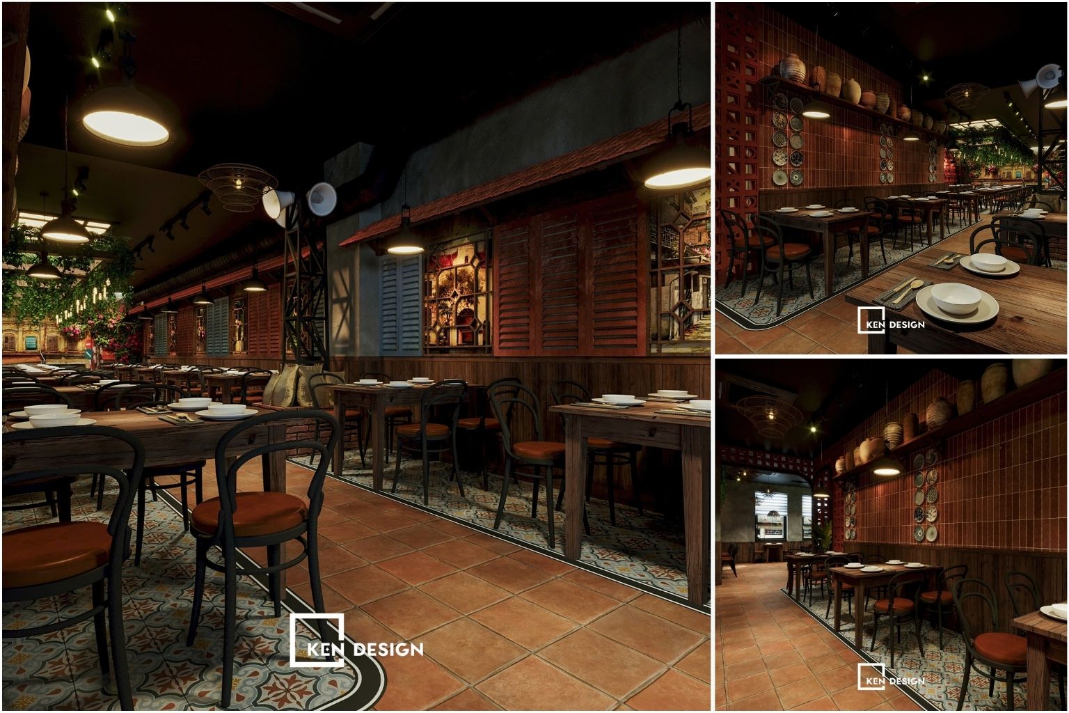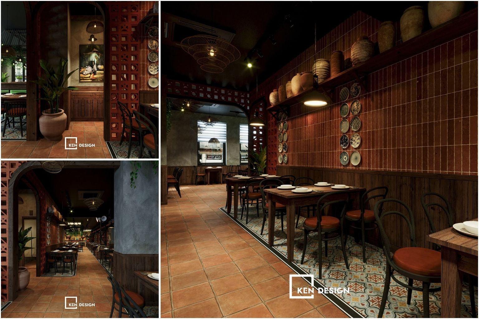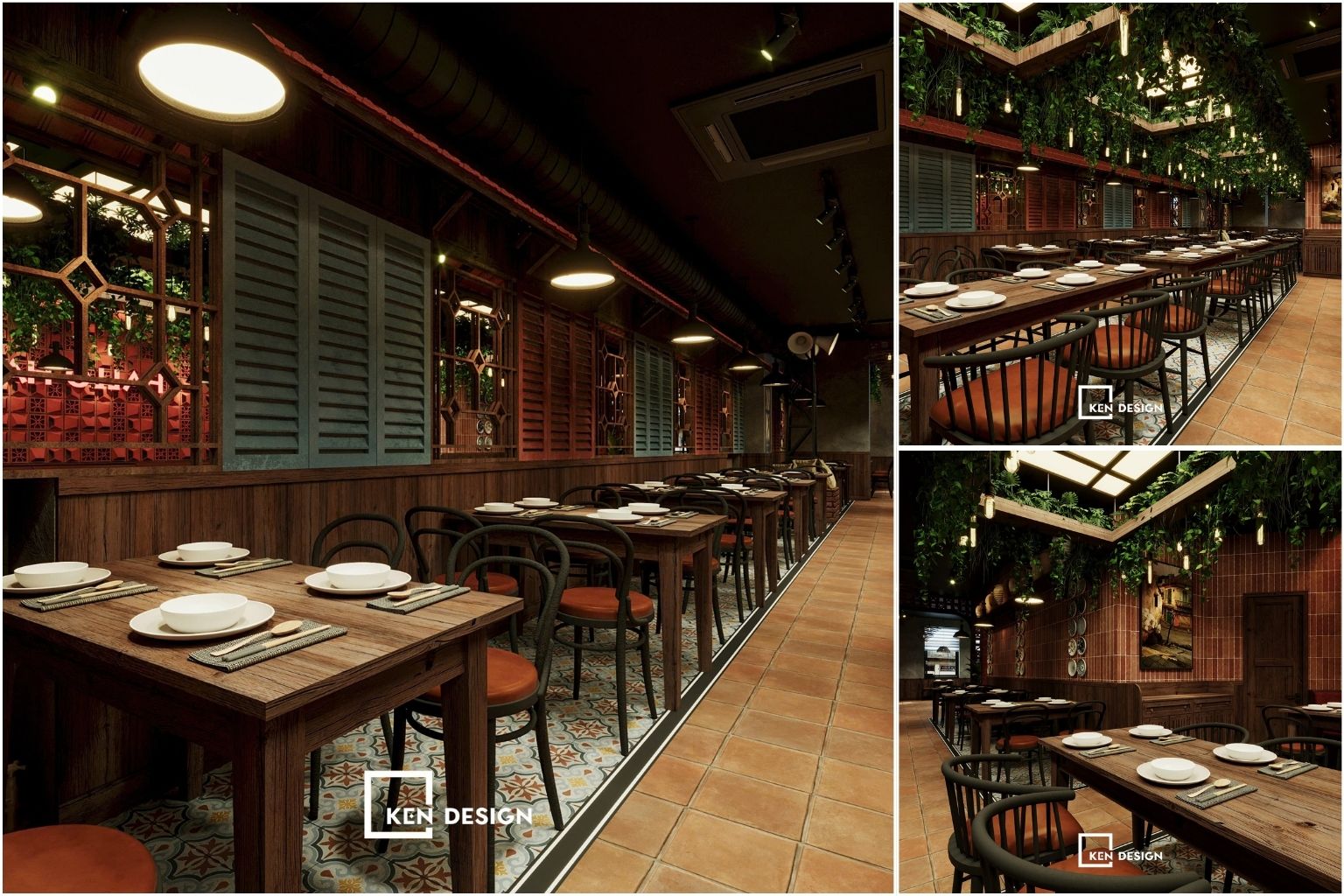 Das Restaurant folgt dem Stil Modernes Vietnam, inspiriert von der Architektur der Altstadt Hanois. Ken Design kombinierte traditionelle Materialien wie Lüftungsziegel, Ziegeldächer, Holztüren und Volkskunst mit modernen Elementen wie Lichtgestaltung und Begrünung.
